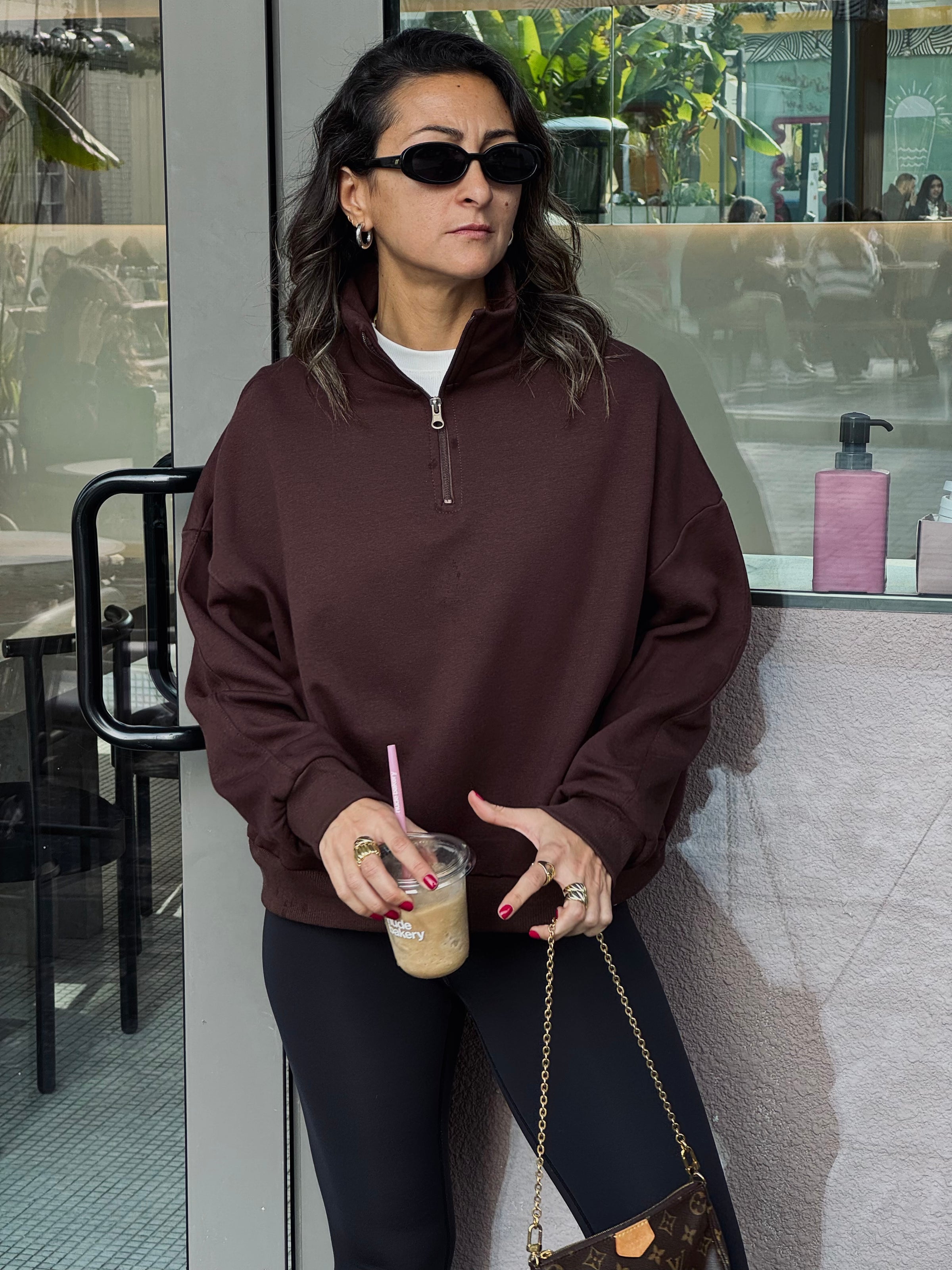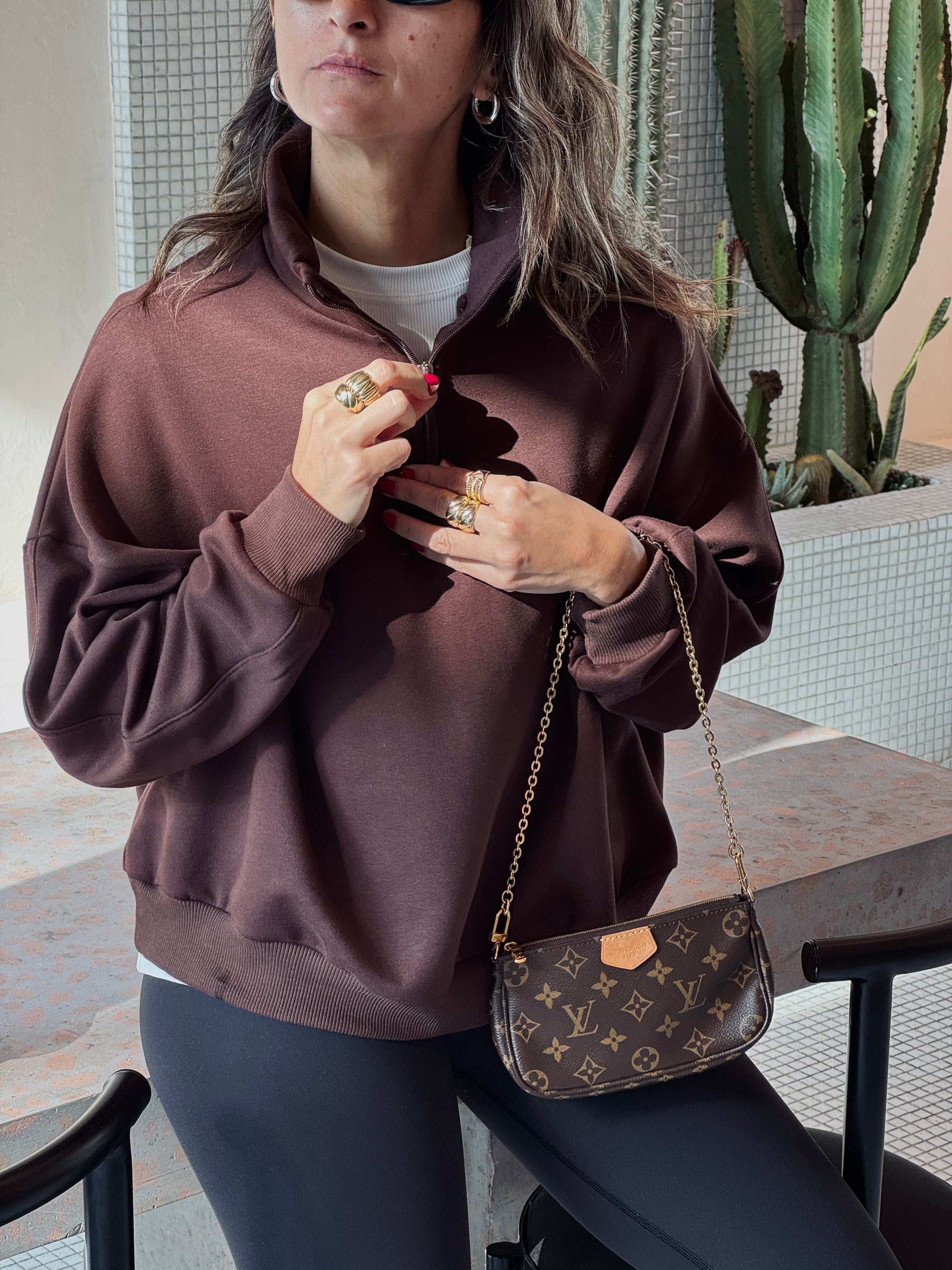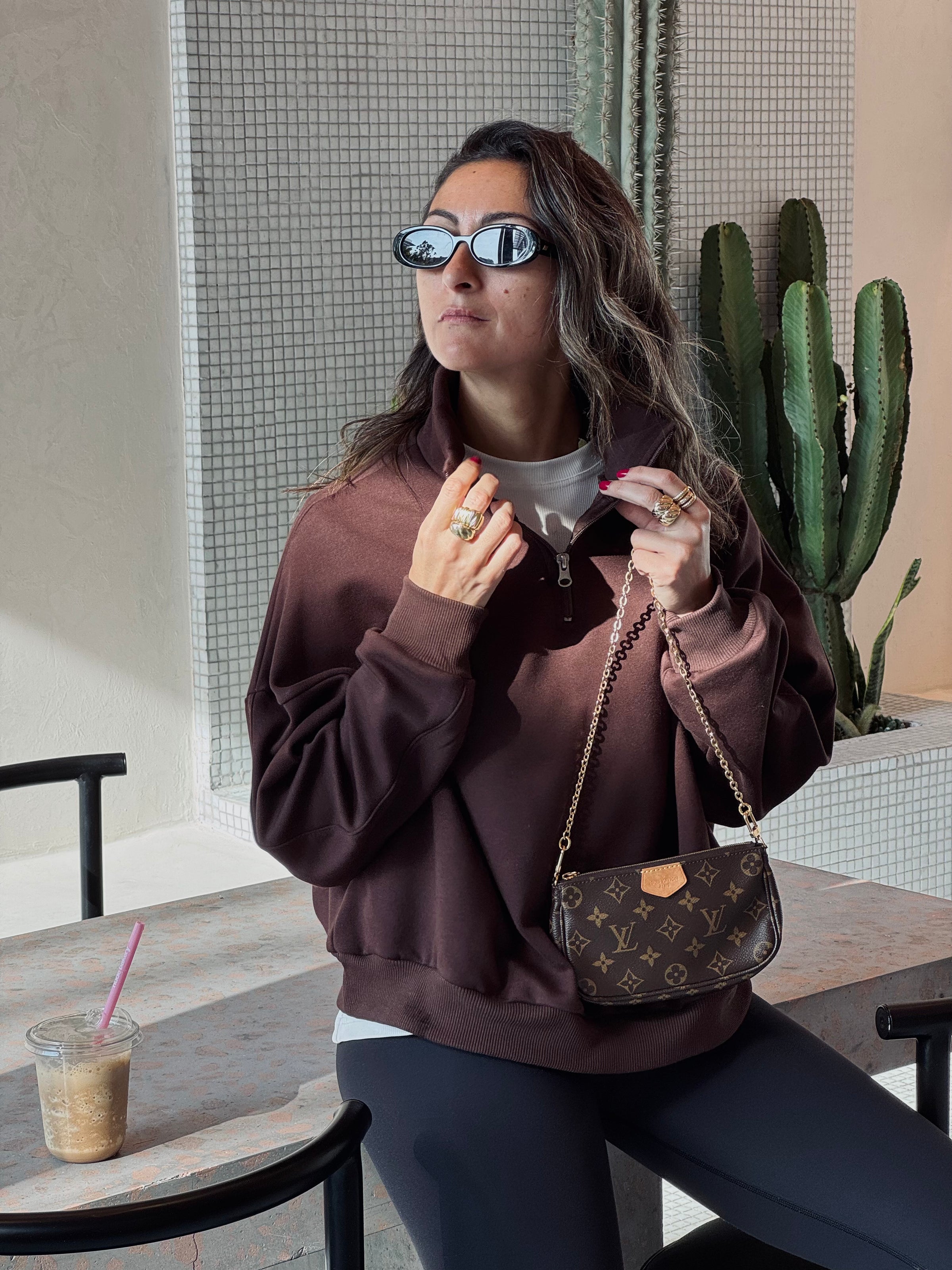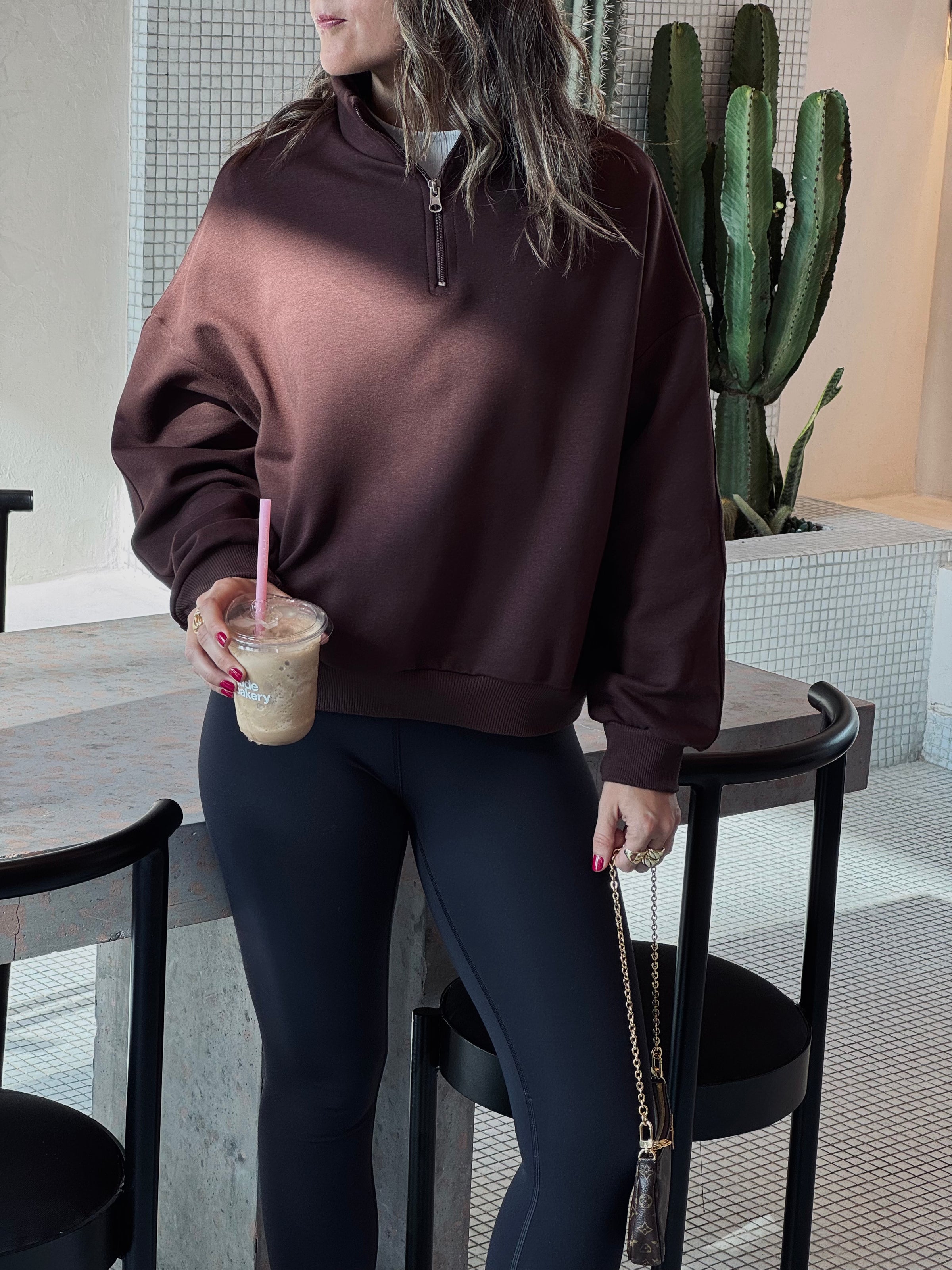 Brown Fleece Lined Quarter Zip Up Sweatshirt