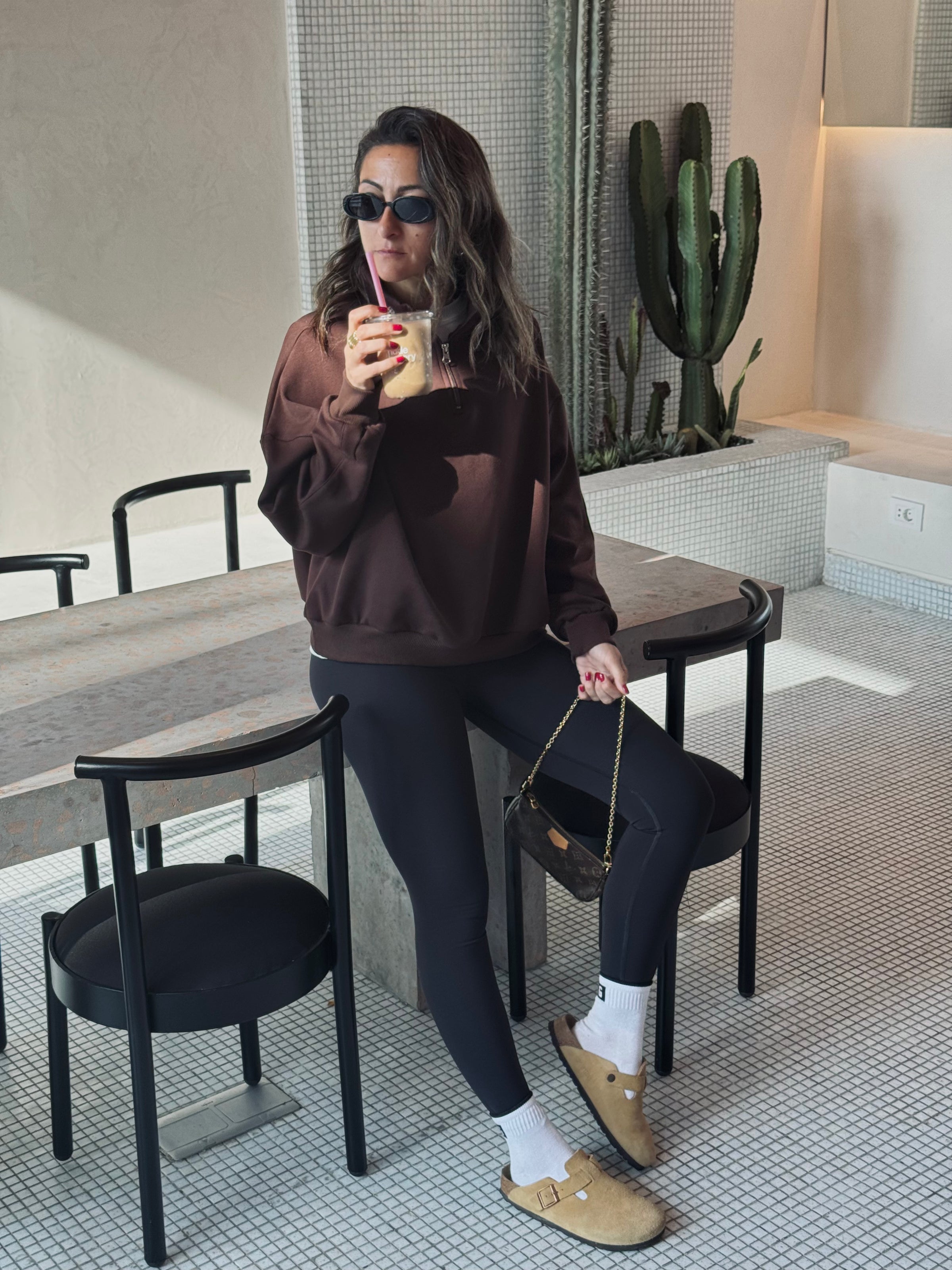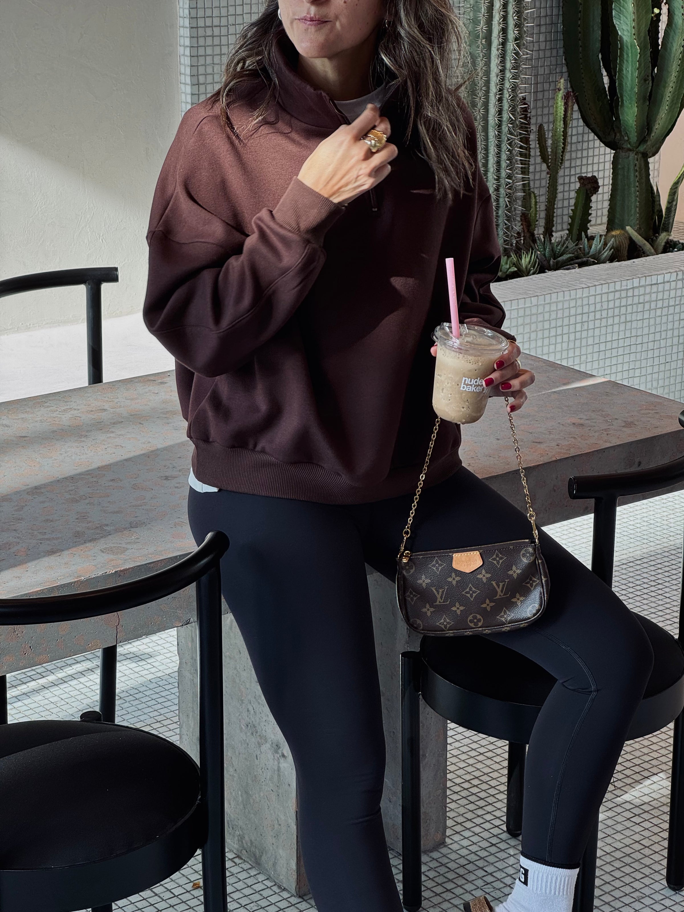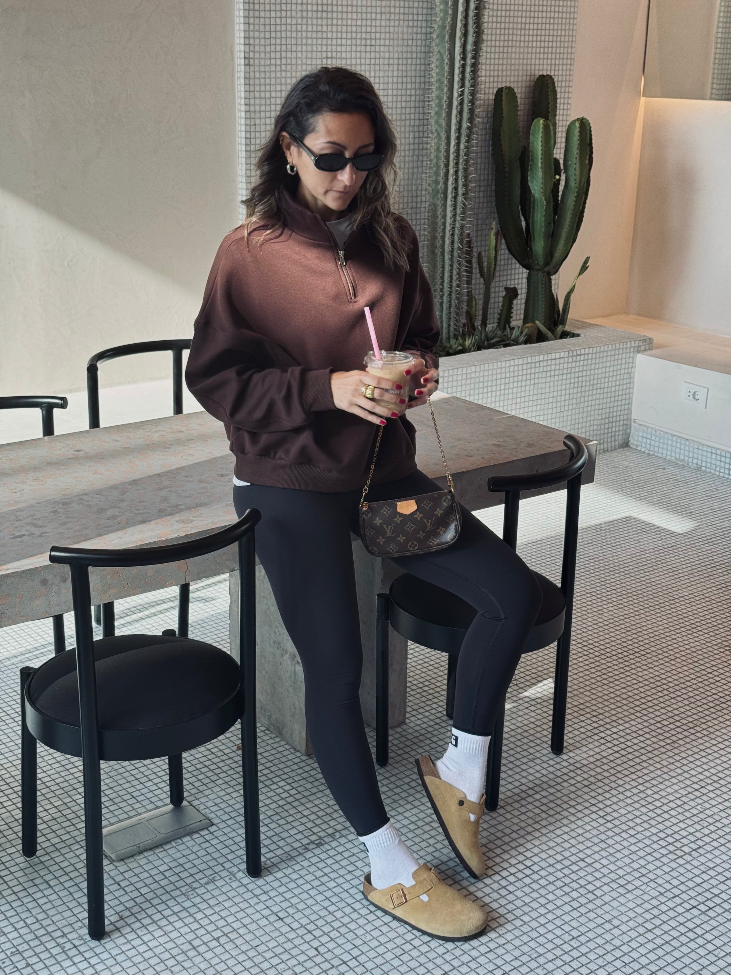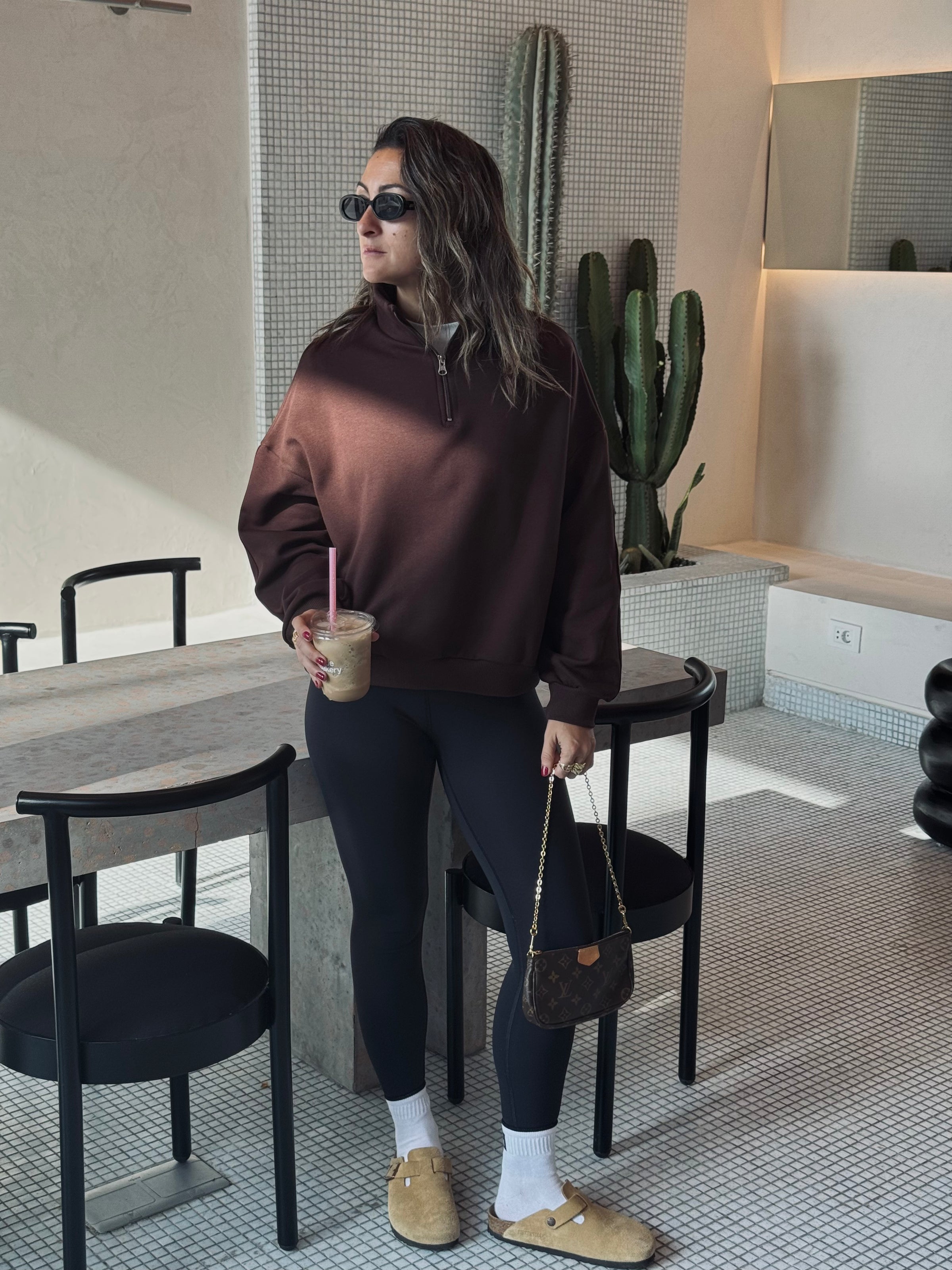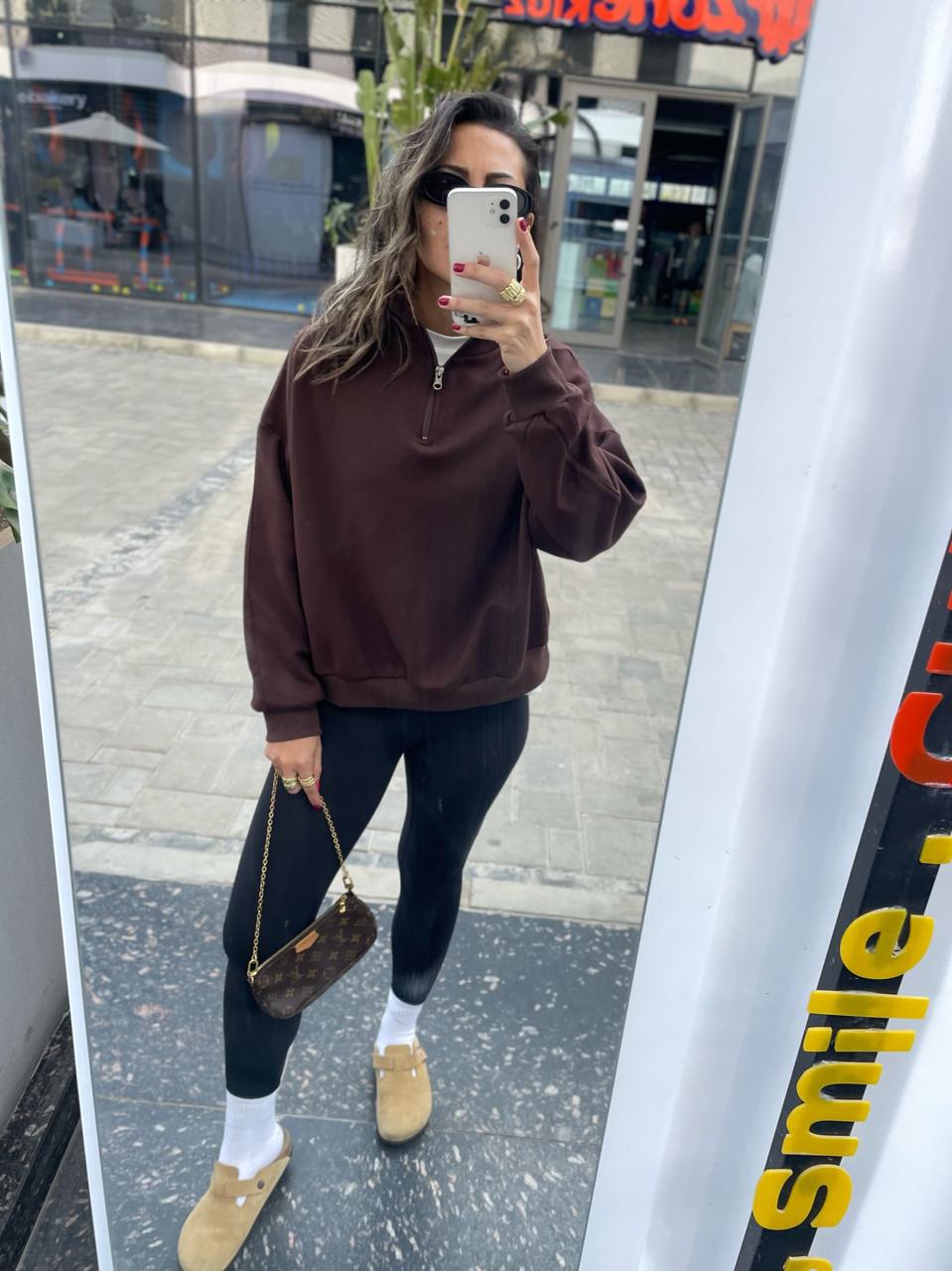 Brown Fleece Lined Quarter Zip Up Sweatshirt