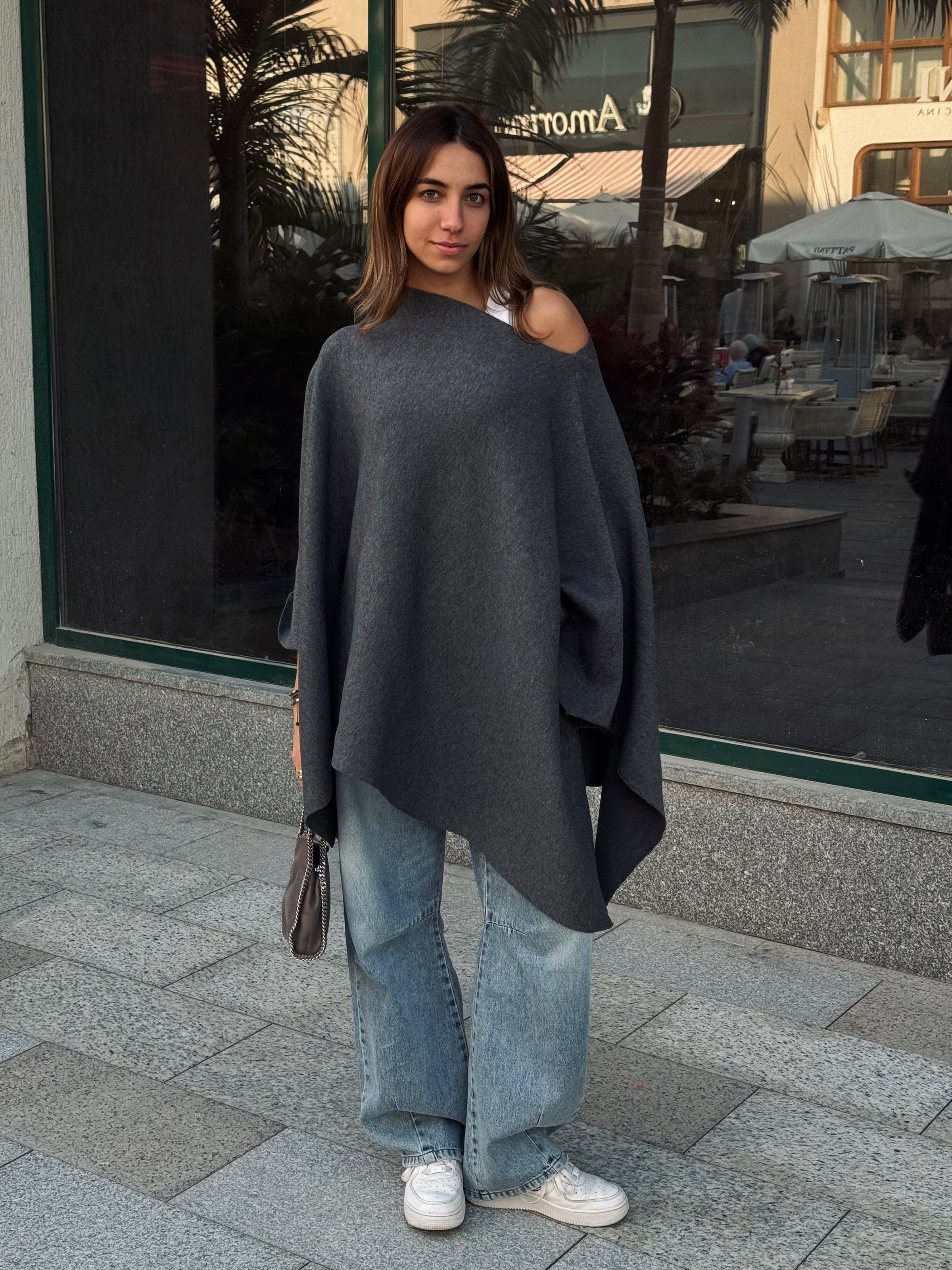 Grey Asymmetrical Poncho