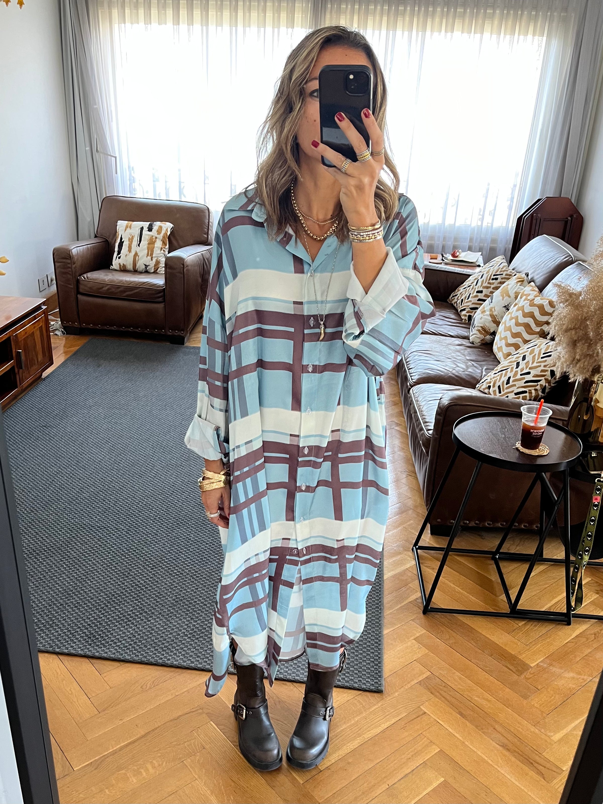 Plaid Satin Long Shirt