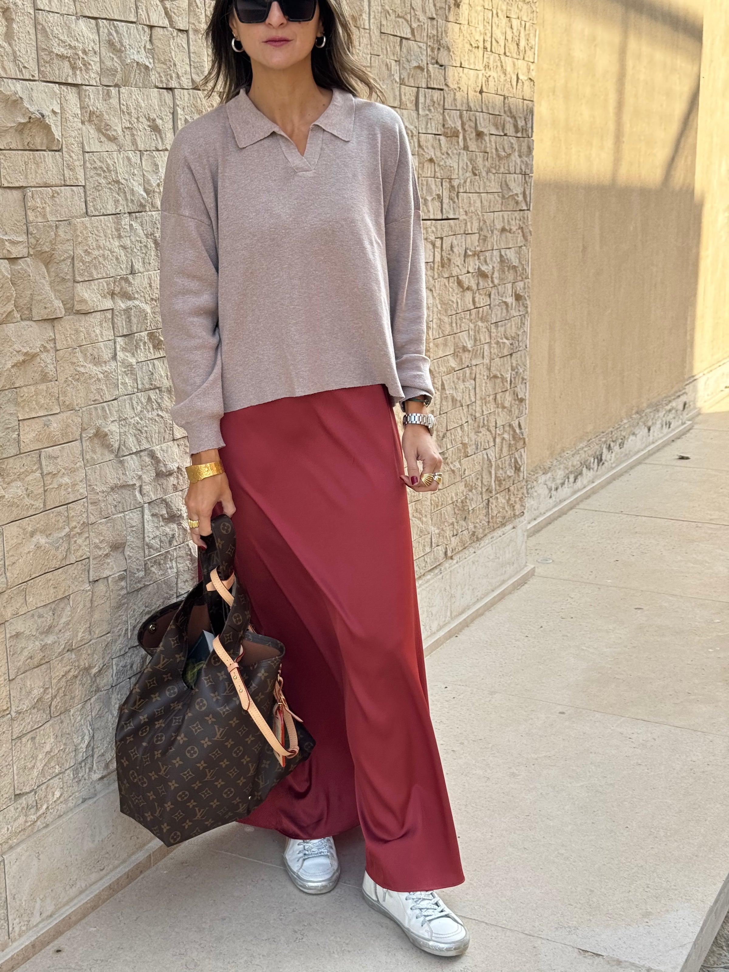Rust Satin Flows Skirt