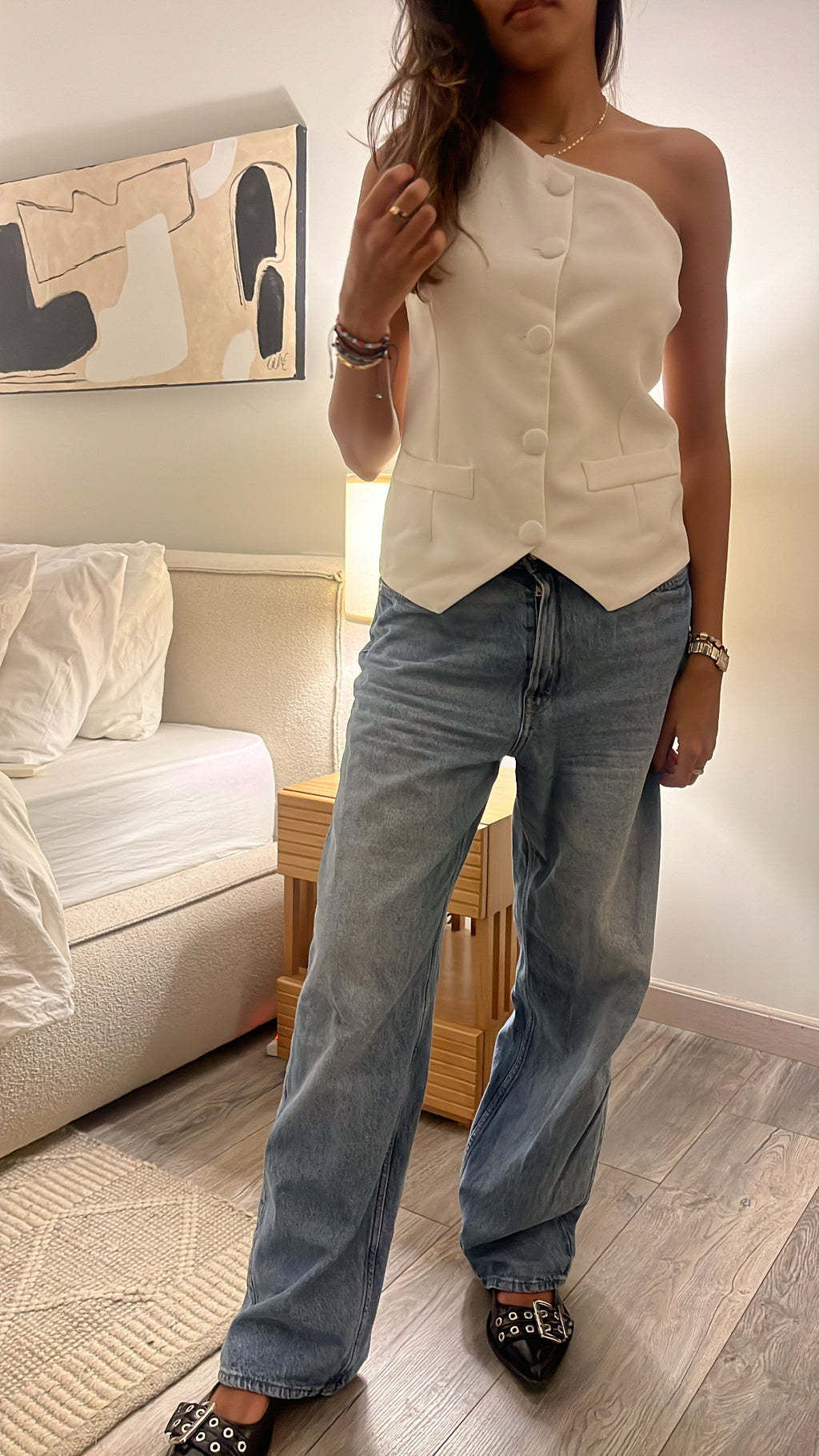 White Business Girl One Shoulder Vest