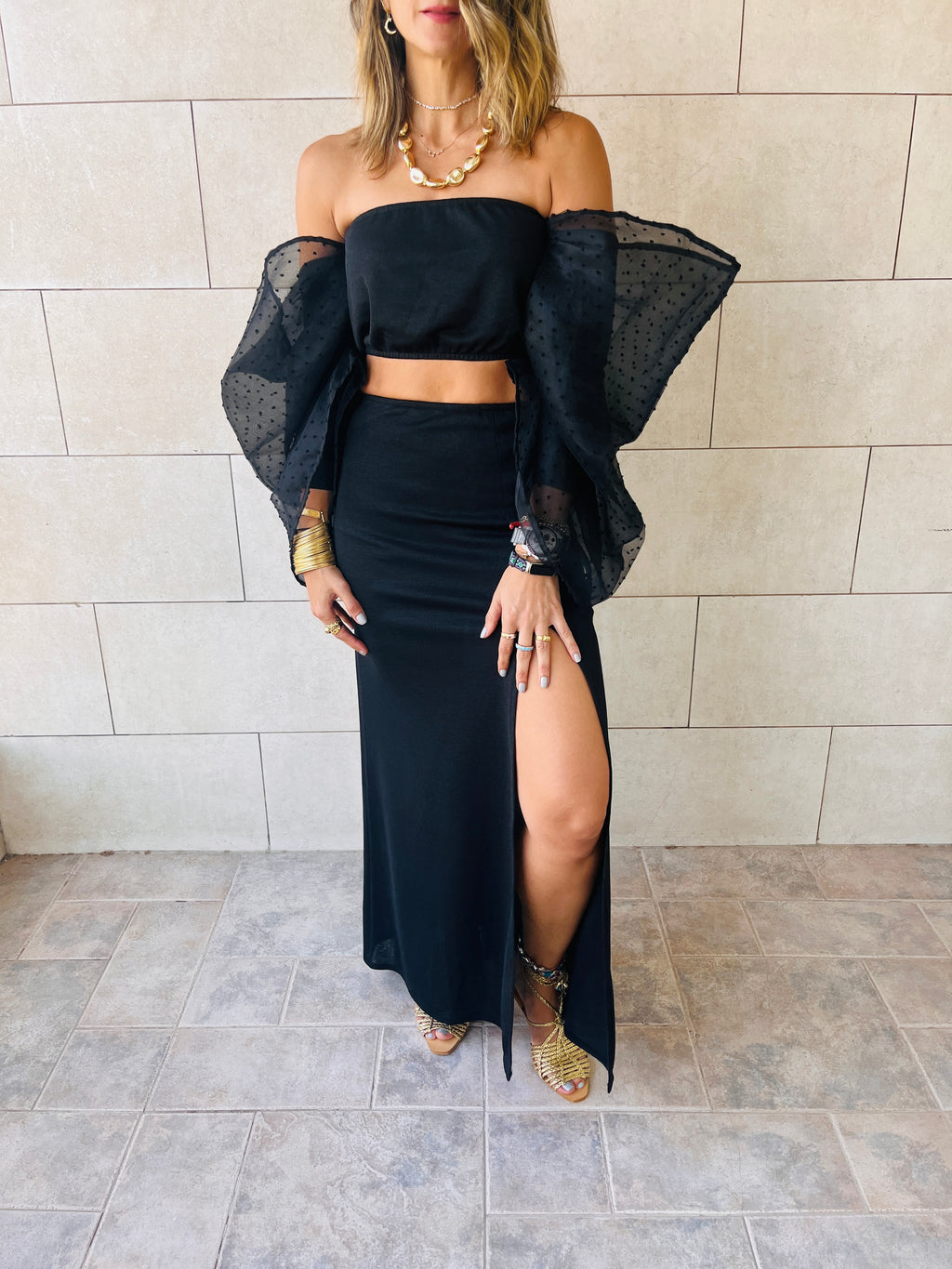 Black Puff Cropped Top