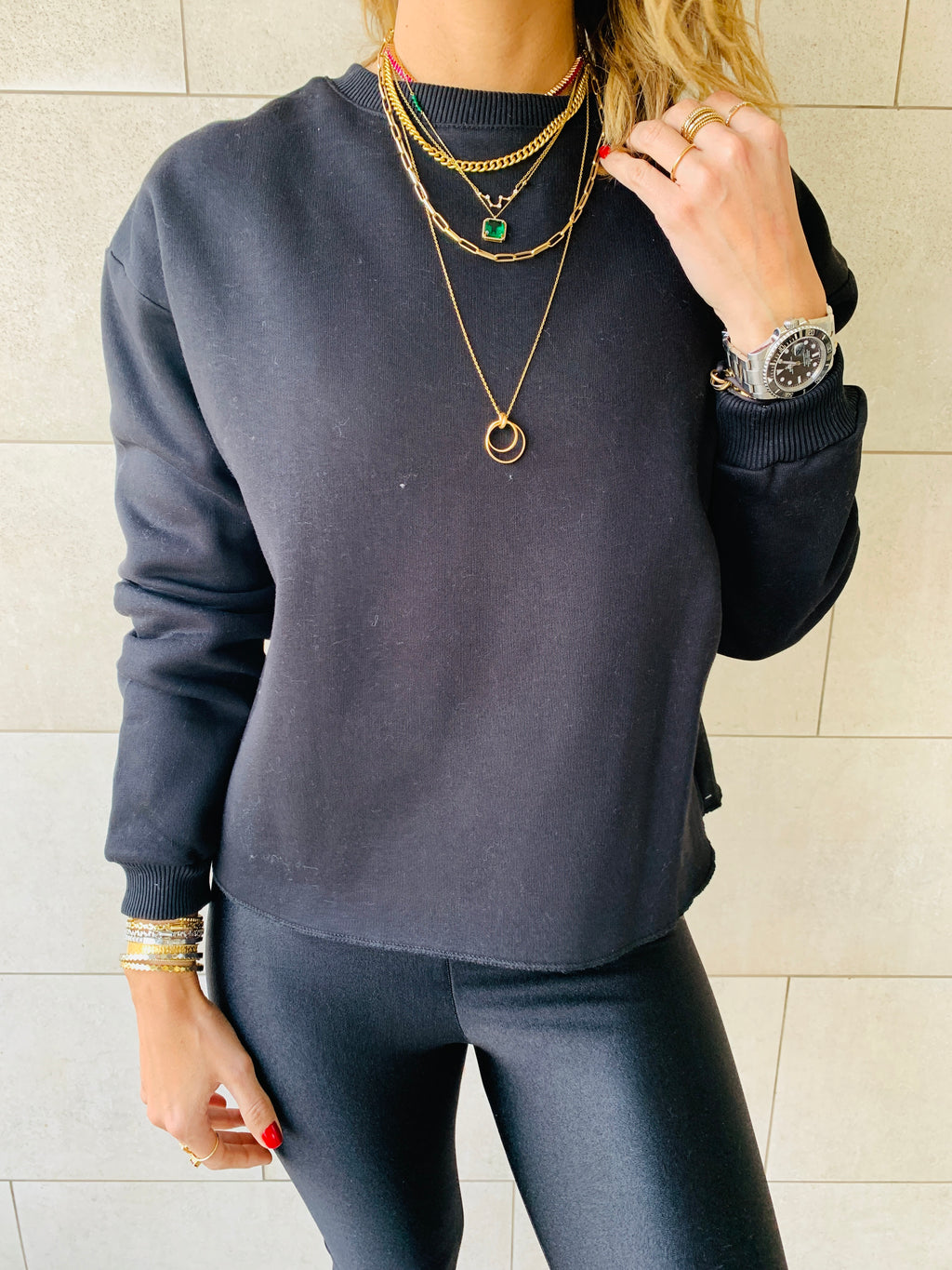 Black Frayed Edgy Cropped Sweatshirt