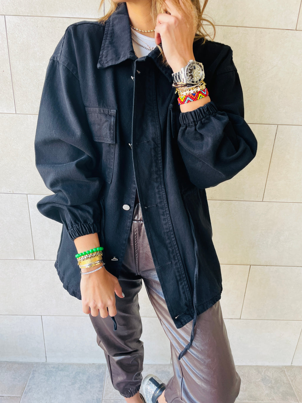 Black Denim Tie Jacket