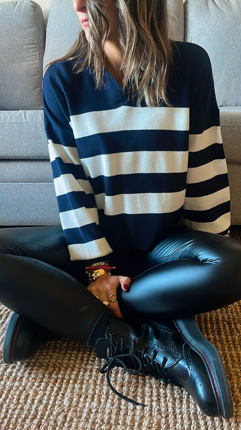 Navy Striped Polo