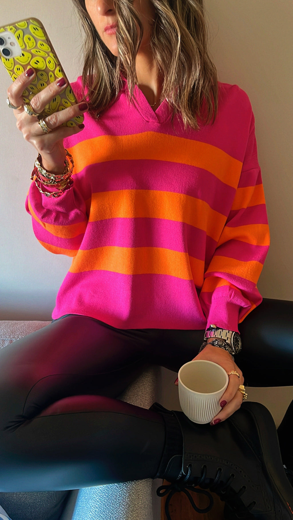 Fuchsia Striped Polo