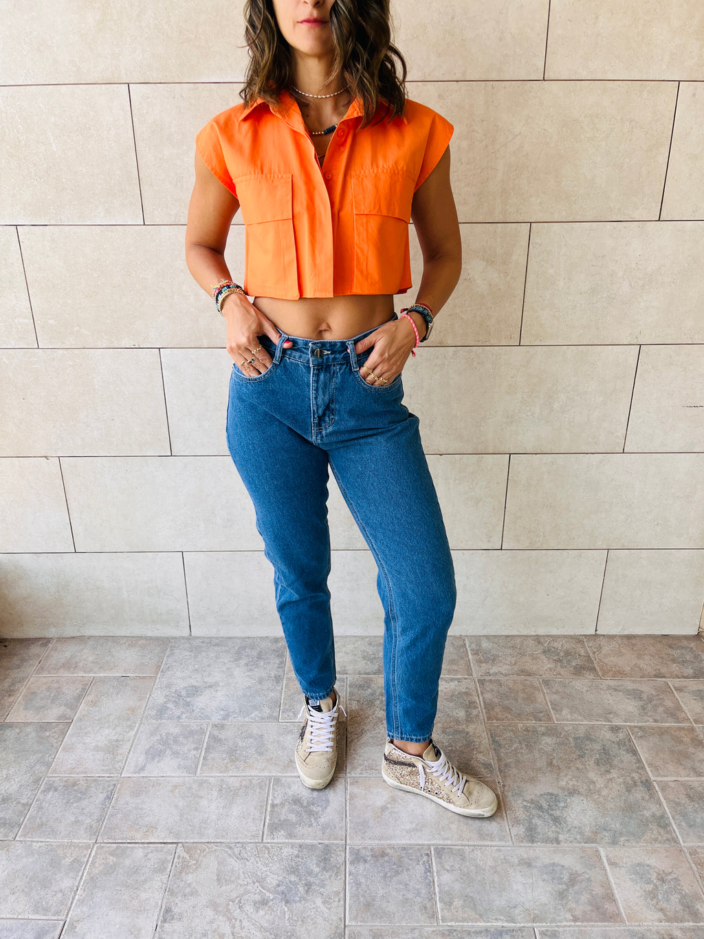 Orange Off Duty Cropped Shirt