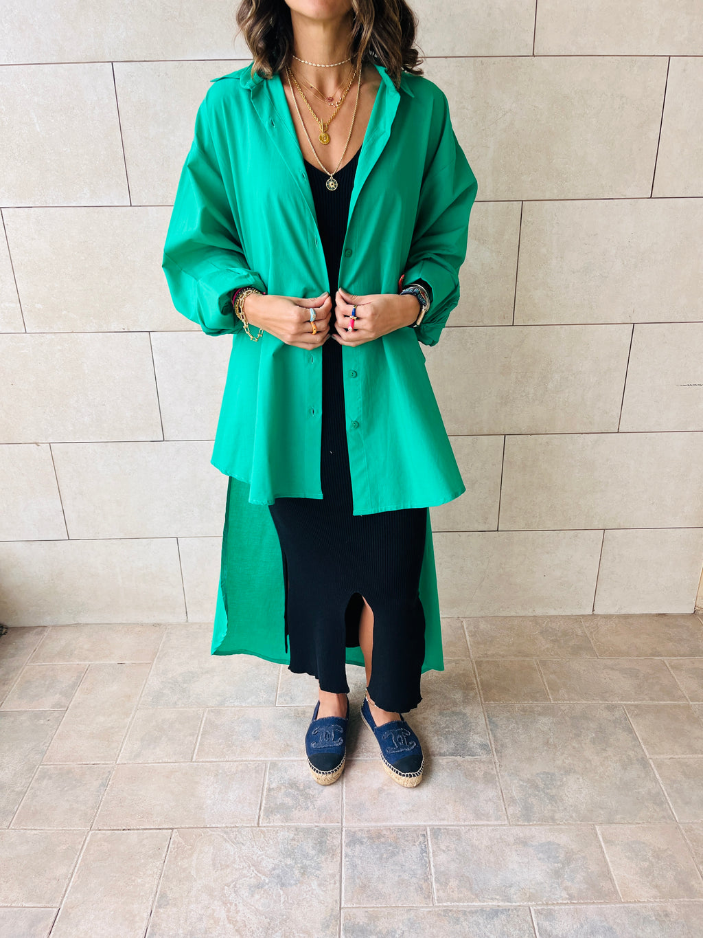Green Over The Top Poplin Dress